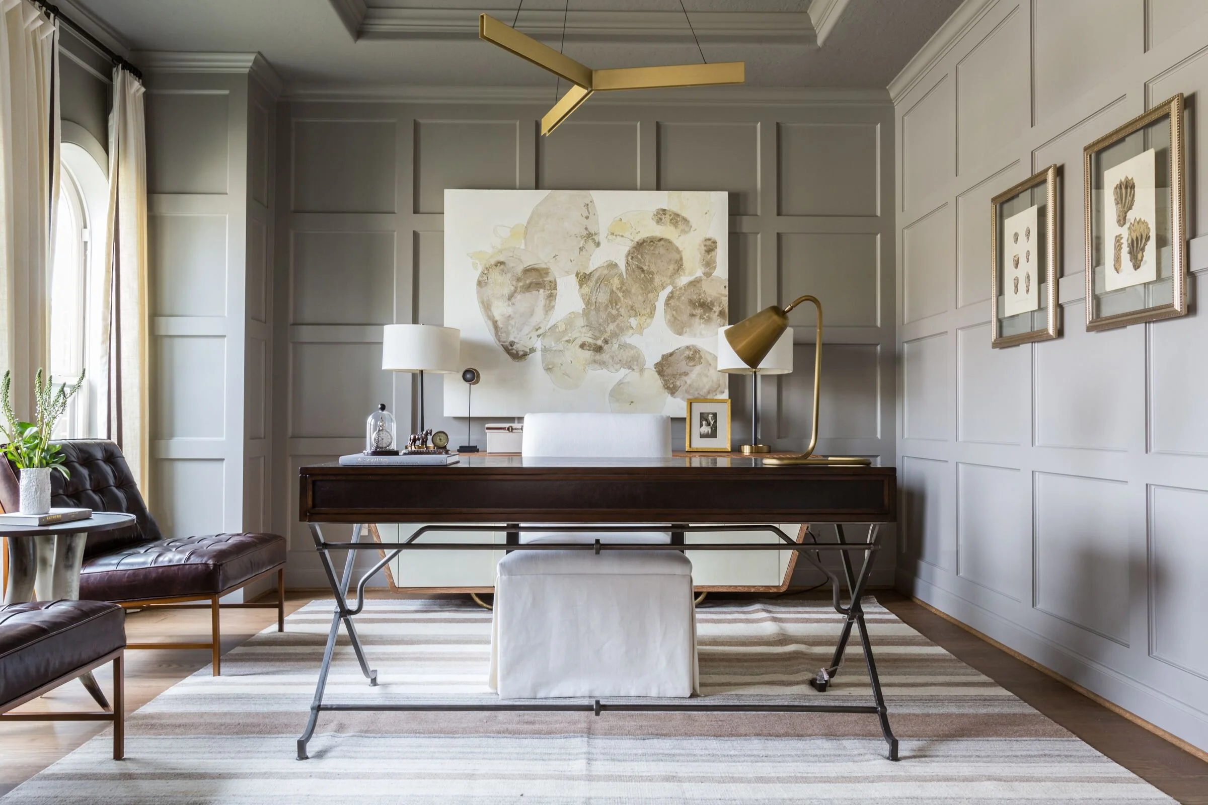 My most favorite detail is the custom range hood we had fabricated for this project. We wanted a tone-on-tone mix of metals for a subtle contrast, but the height and scale added such an impact and made for an amazing focal point for this space. We also included in a drink fridge for extra soda and juice storage for entertaining. My clients, like myself, are big coffee drinkers so having a dedicated space for their coffee maker and mug collection was important. We added in a large pantry cabinet with roll-out drawers to make storage easy and convenient.